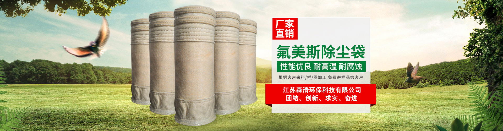 江蘇森清環保科技有限公司位于蘇北平原、黃海之濱的江蘇省阜寧經濟開發區濾料產業園,東臨沿海高速、西臨新長鐵路、北枕連云港口、南際鹽城機場,204國道繞廠而過。依托省級經濟開發區的優勢,以科技創新為先導、現代管理為基礎,企業發展蒸蒸日上。   公司主營無堿、中堿玻纖濾袋,PTFE浸漬膨體覆膜(水泥廠窯頭,窯尾專用),無紡高溫、中溫、常溫針刺氈濾袋,濾袋配件等,具有完備的專業安裝和售后服務體系!...